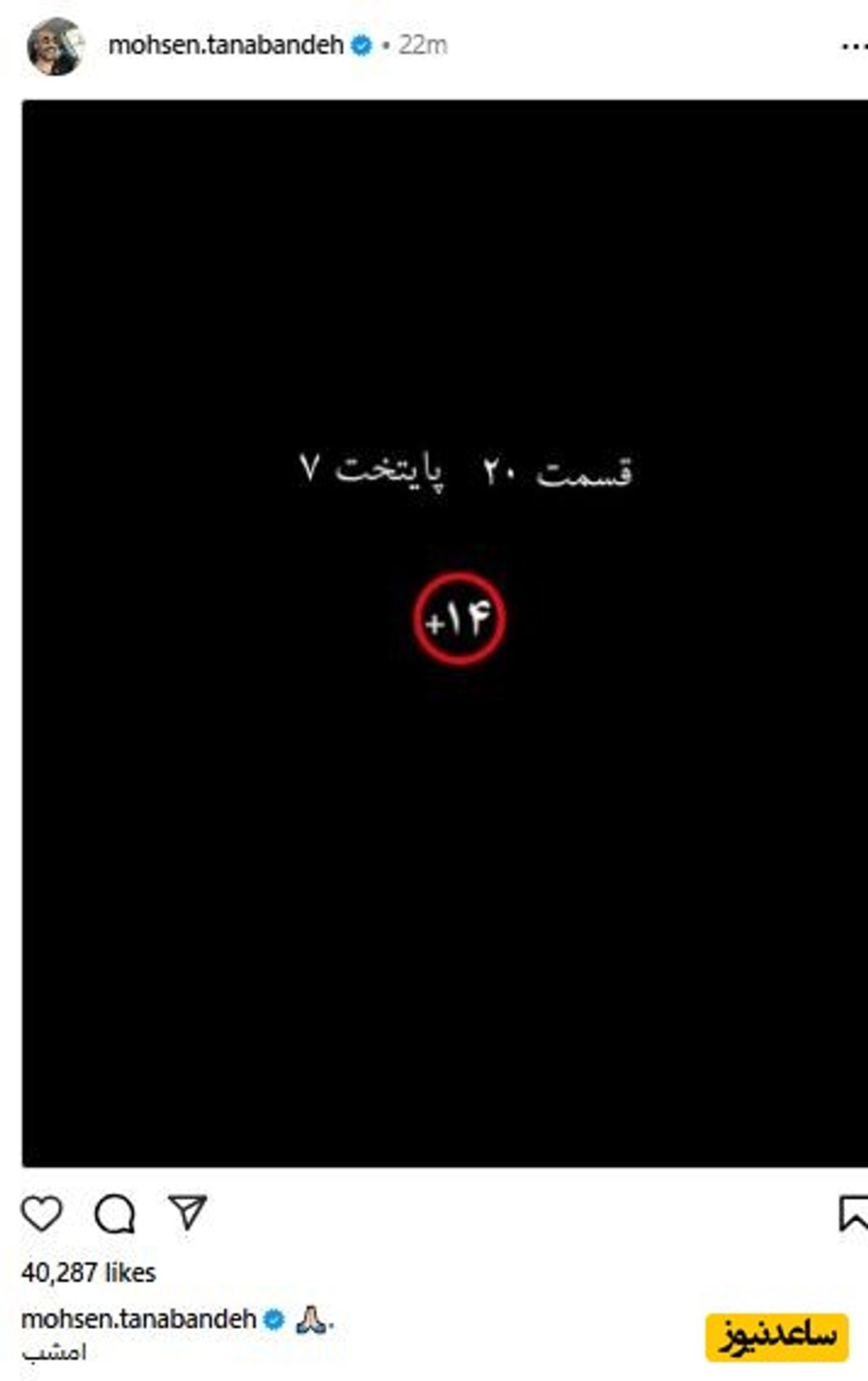 محسن تنابنده در جدیدترین پست اینستاگرامی اش از محتوای نامناسب قسمت 20 سریال پایتخت خبر داد.