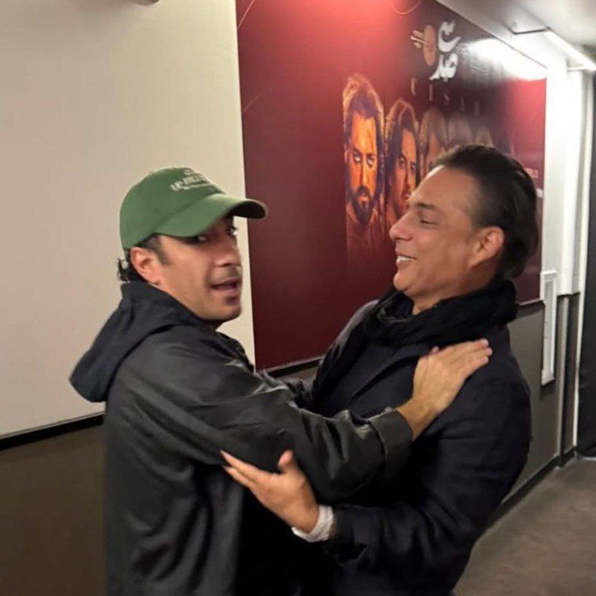 نوید محمدزاده و پیمان معادی در پشت صحنه کنسرت، نمایش «سیصد» در آمریکا دیدار کردند.