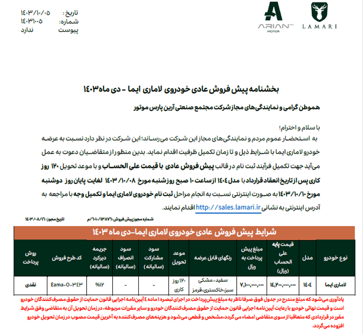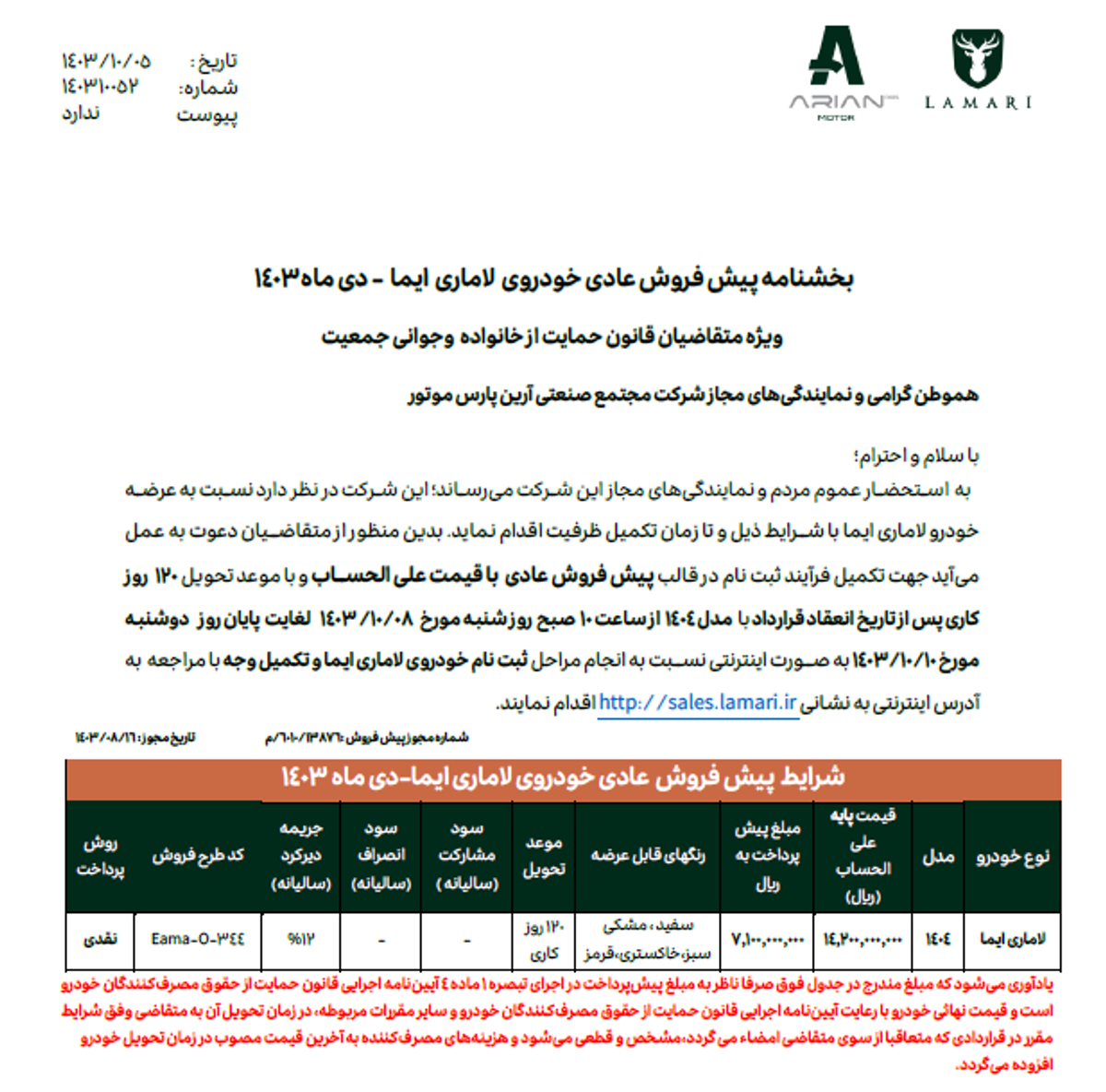 جزئیات پیش فروش خودرو لاماری ایما ویژه متقاضیان عادی و جوانی جمعیت اعلام شد.