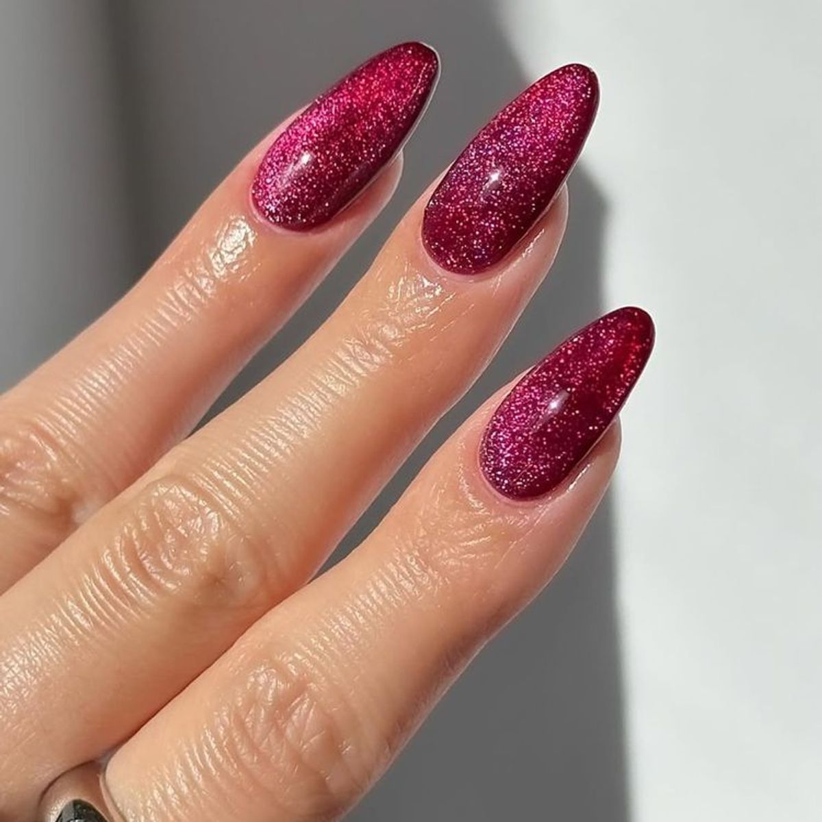 طراحی ناخن امروز | جادوی درخشش و لطافت؛ ناخن شیشهای مخملی، ترند بیرقیب 2025 | ایده های جذاب طراحی ناخن آبنباتی