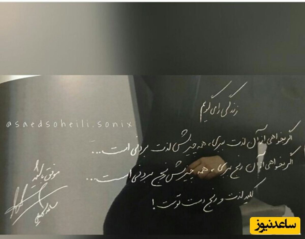 تصویری از امضا و نوشته زیبا ساعد سهیلی را مشاهده بفرمایید.