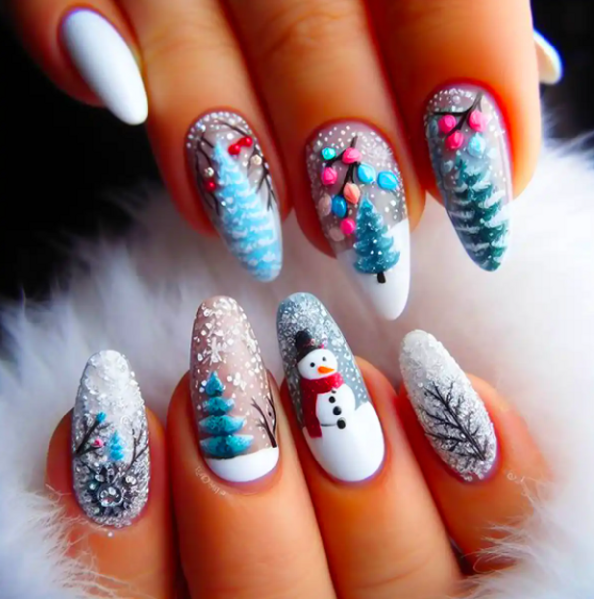 در کنار رنگها، استفاده از طرحهای زمستانی مانند دانههای برف، شالهای بافتنی و الگوهای کریستالی، جذابیت بیشتری به طراحی ناخن میدهد. این طرحها معمولاً با ابزارهای طراحی ناخن و استیکرهای مخصوص ایجاد میشوند و نیاز به دقت و حوصله دارند. طراحی سهبعدی نیز یکی از ترندهای محبوب زمستانی است که با اضافه کردن جزئیات کوچک مانند نگینها و مهرهها، جلوهای منحصربهفرد به ناخنها میبخشد.