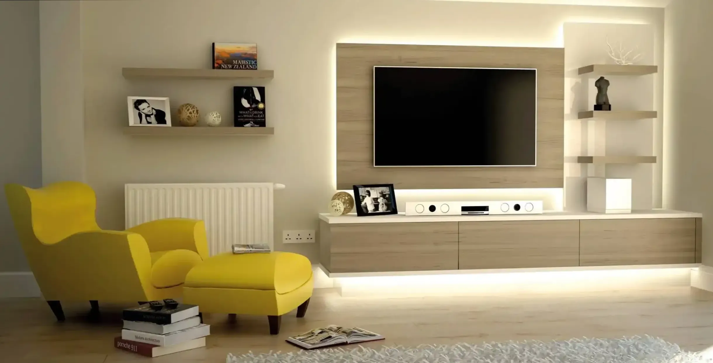 دکوراسیون داخلی و طراحی تیوی وال | طراحی تیوی وال نشیمن کوچک | دکوراسیون خانه کوچک | ترندهای دکوراسیون 2026 | تغییر دکوراسیون کم هزینه