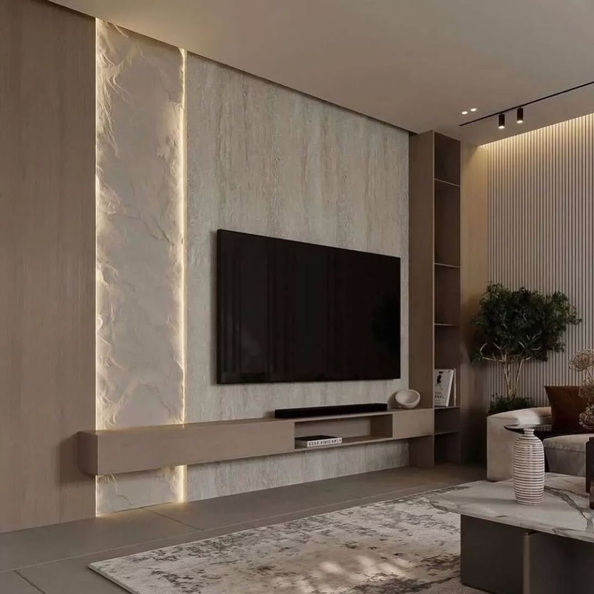 تیوی وال ترند 2026؛ راز دکوراسیون شیک و کاربردی در نشیمنهای کوچک | 21 ایده برتر طراحی تیوی وال(TV wall) در نشیمن های کوچک
