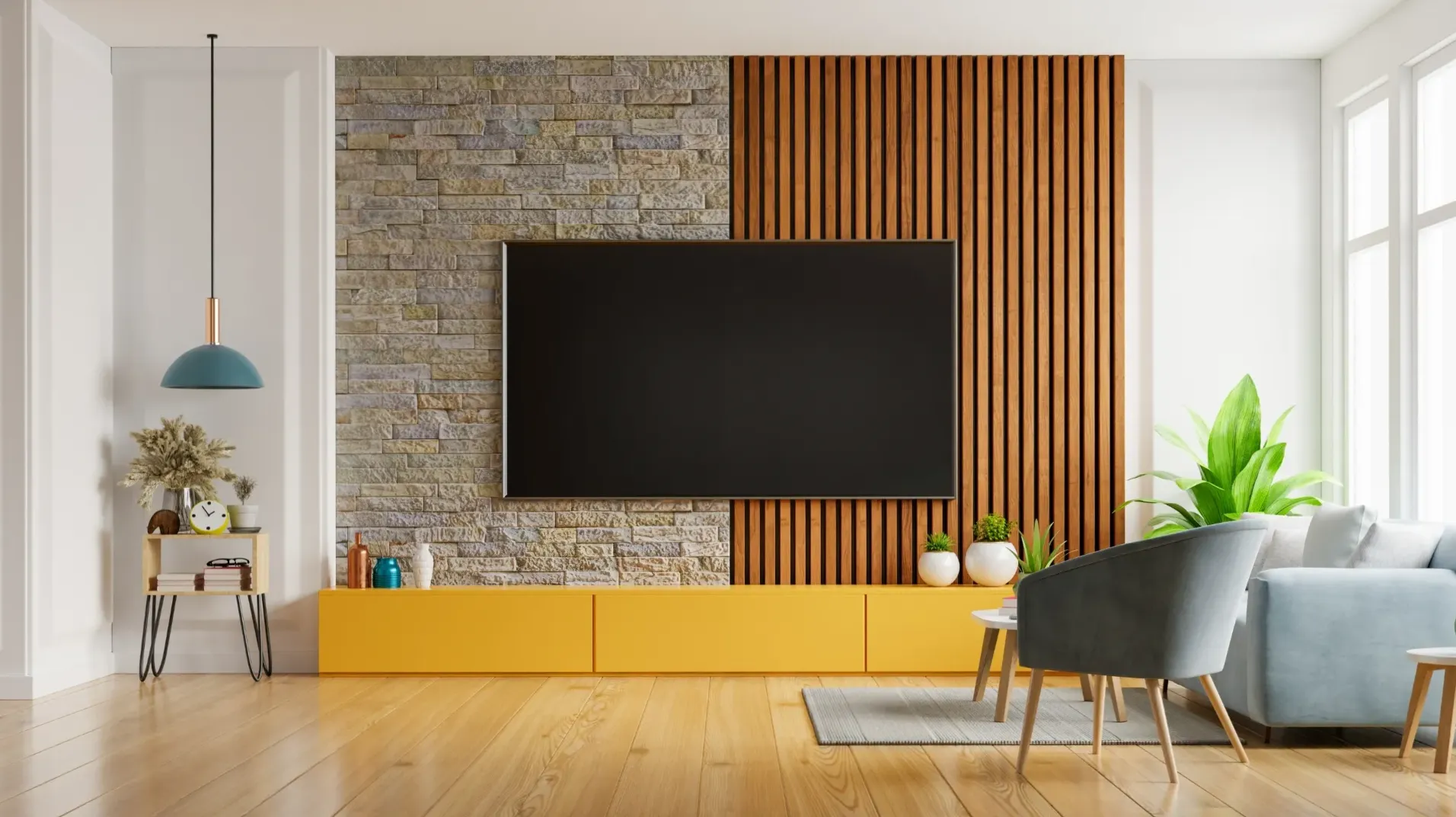انتخاب متریال مناسب: از چوب، سنگ، یا پنلهای سهبعدی برای دیواری زیبا و بادوام استفاده کنید.