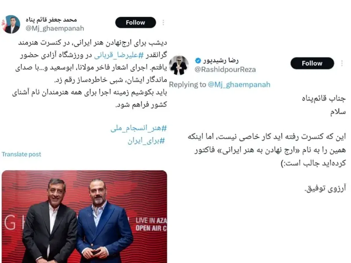 کنایه رضارشیدپور به کنسرت رفتن جعفر قائمپناه