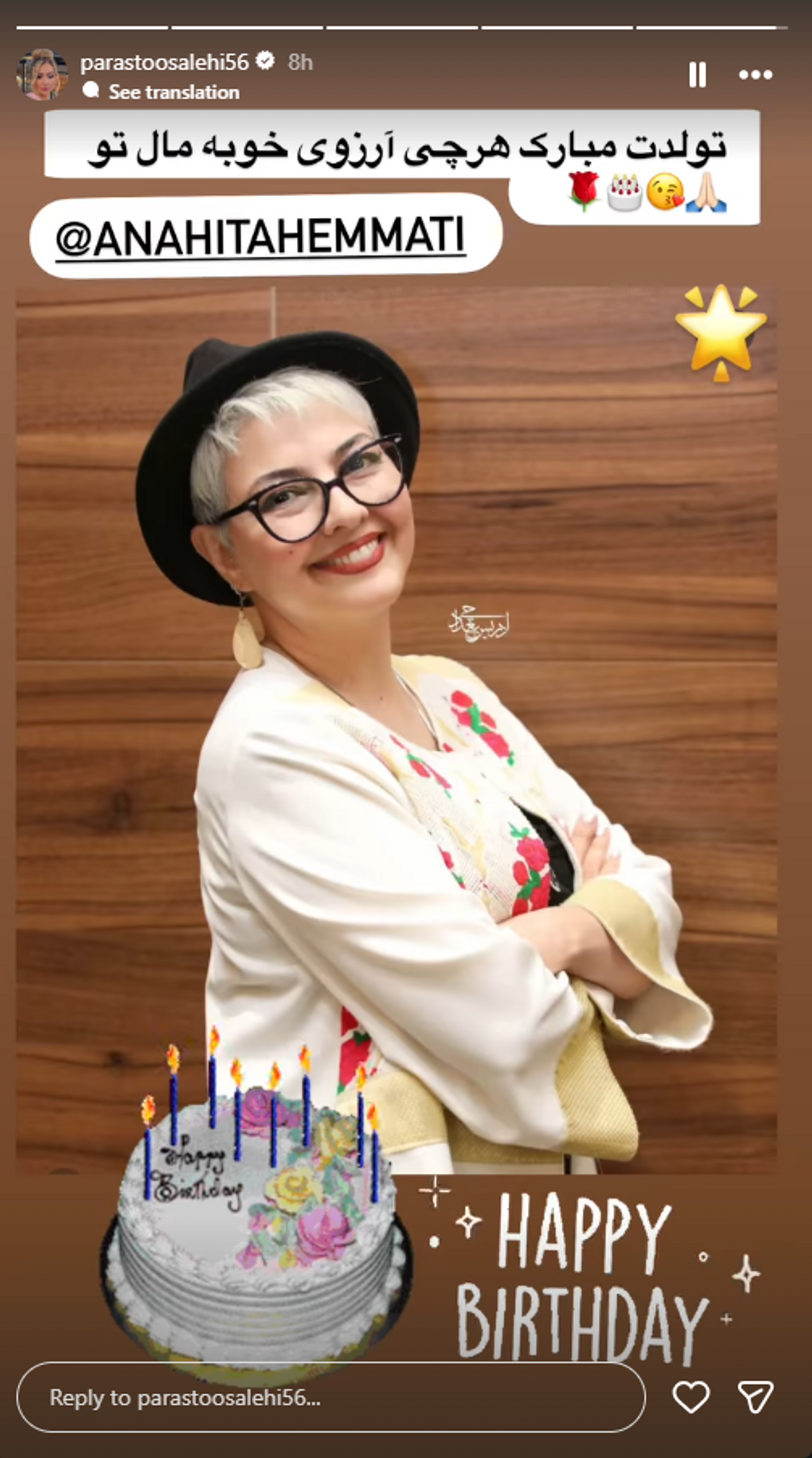 استوری احساسی پرستو صالحی مجری برنامه عشق ابدی برای تولد آناهیتا همتی