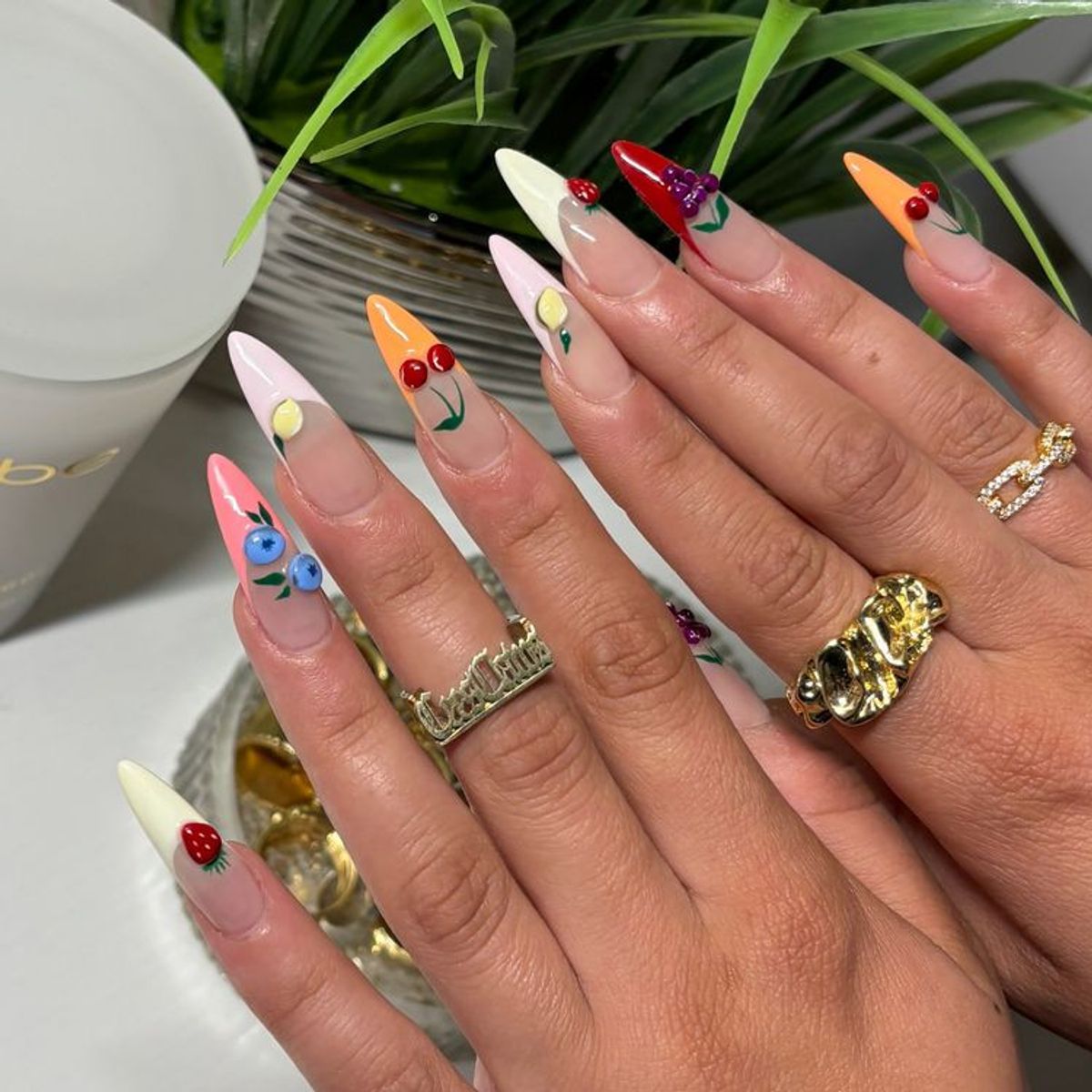 و البته چه چیزی تابستانیتر از میوههای رنگارنگ است؟ طراحی ناخن با طرح میوههایی چون توتفرنگی، آلبالو یا کیوی میتواند انرژی سرزندهای به دستان شما ببخشد. اگر در خانه هستید، با برچسبهای ناخن یا نقاشی دستی روی لاک شفاف، بهراحتی میتوانید این استایل را خلق کنید. و اگر دنبال چیزی حرفهایتر هستید، بهتر است به سالن موردعلاقهتان سر بزنید و طراحی ناخن میوهایتان را به دست متخصصان بسپارید.