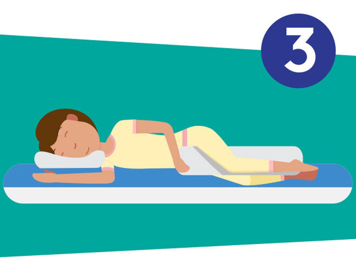 ۳. خوابیدن به پهلو با قرار دادن با بالش بین زانوها