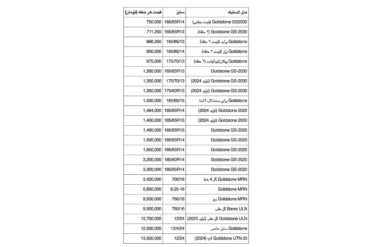 قیمت لاستیک دولتی گلدستون اردیبهشت ۱۴۰۴