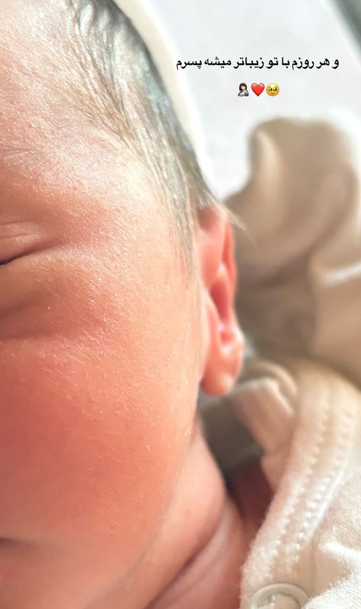 اولین عکس از چهره پسر مونا کرمی؛ هر روزم با تو زیباتر میشه
