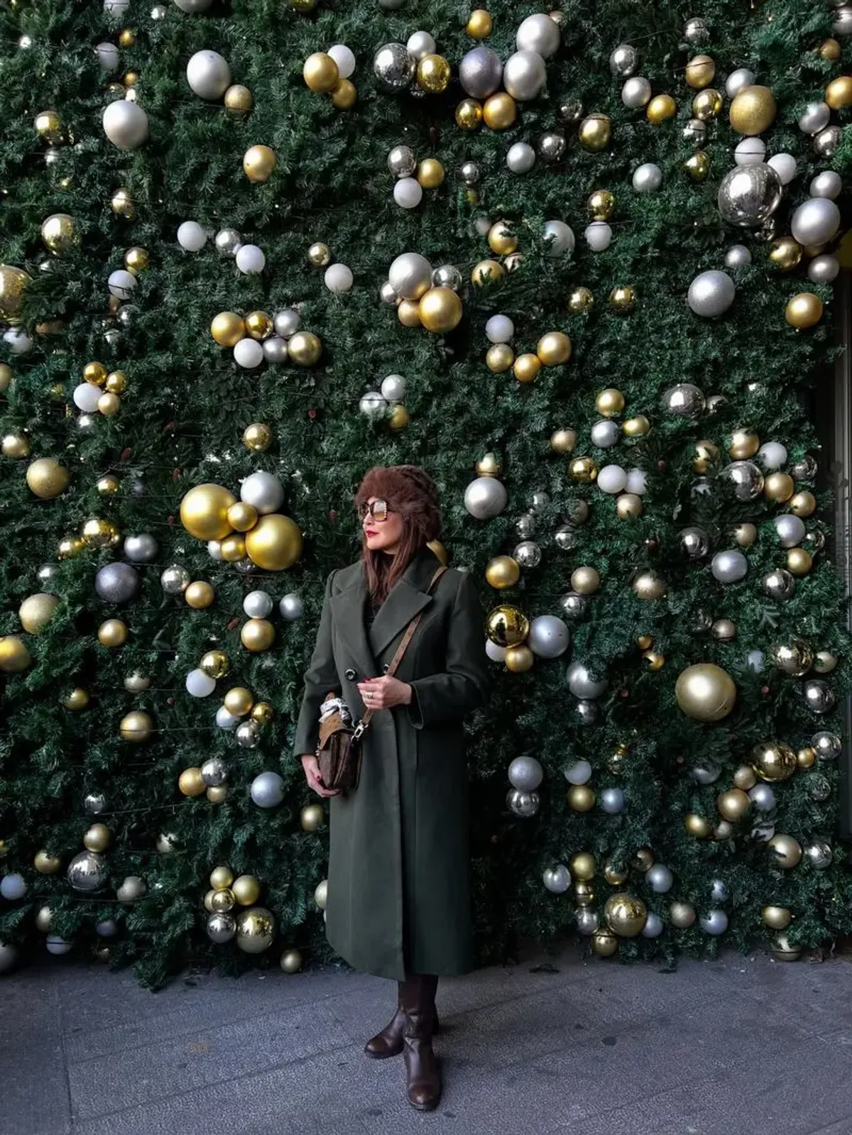 او در این تصاویر با استایلی شیک و هماهنگ با حالوهوای کریسمس دیده میشود که بیش از همه، پالتوی سبزرنگ او توجهها را به خود جلب کرده است.