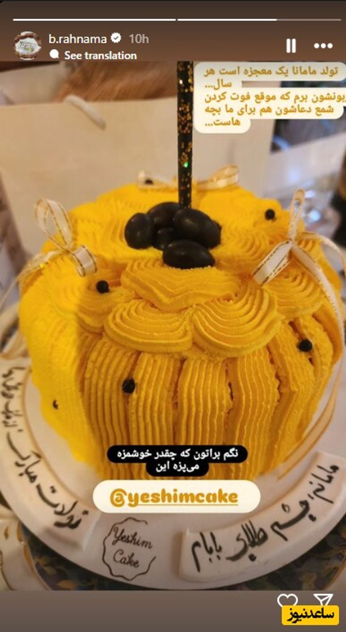 تصویری از استوری بهاره رهنما را مشاهده بفرمایید. وی کیک تولد مادرش را به تصویر کشیده است.