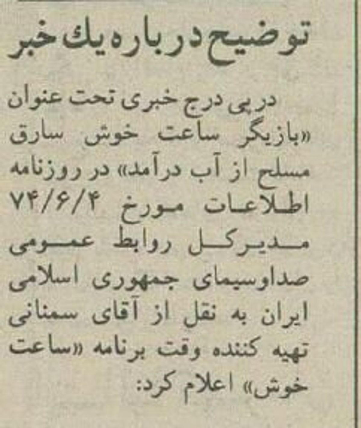 ۴ شهریور ۱۳۷۴ رسانهها از دستگیری سارقان مسلحی خبر دادند که در مجموعه ساعت خوش حضور داشتند. روزنامه اطلاعات ۲۷ شهریور ۱۳۷۴ پاسخ روابط عمومی صداوسیما را منتشر کرد که ادعای سارقان را تکذیب کرده بود.