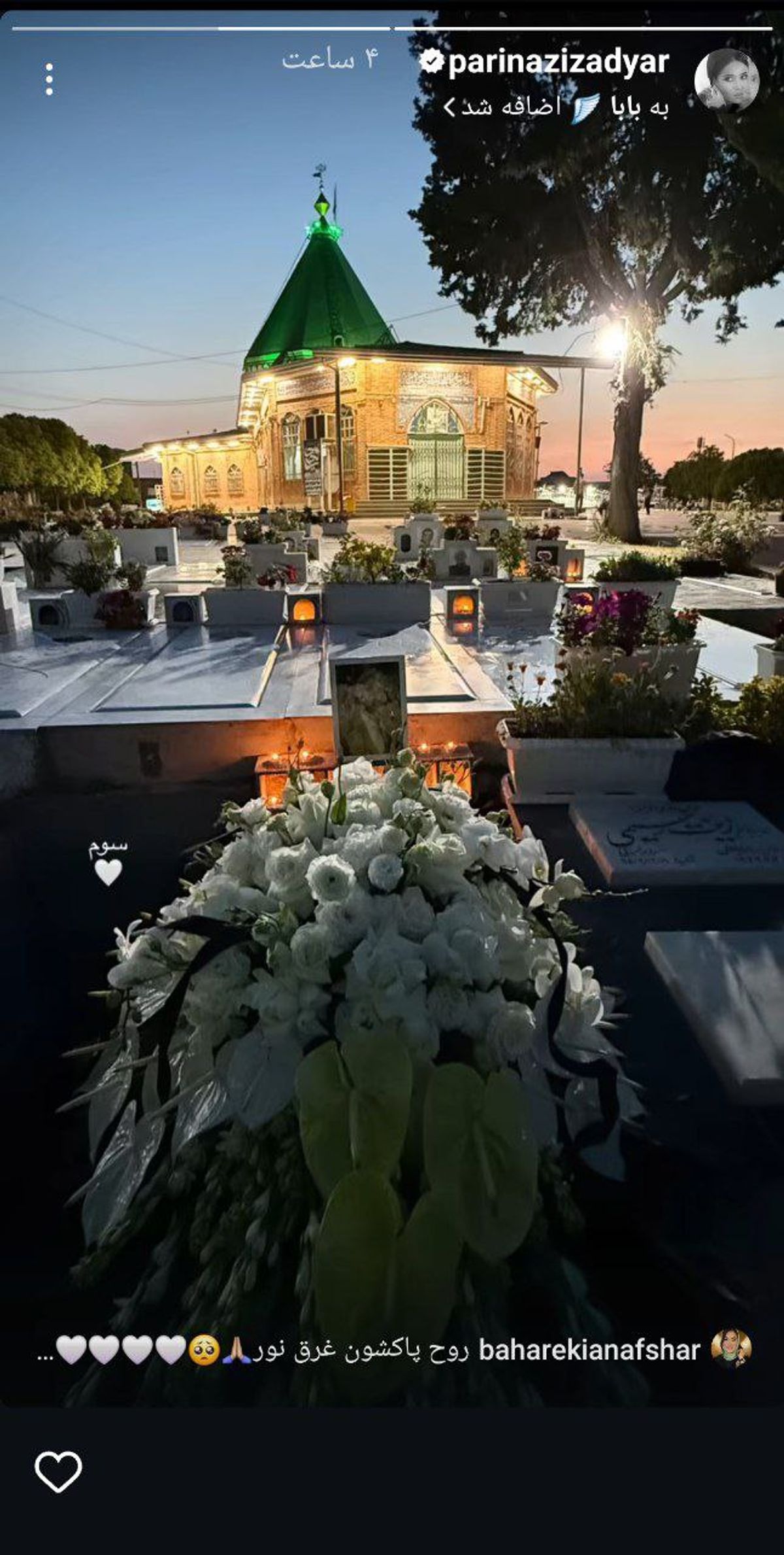 پریناز ایزدیار عزادار شد| تصویری دردناک از قبر پدر پریناز ایزدیار در کنار امامزاده