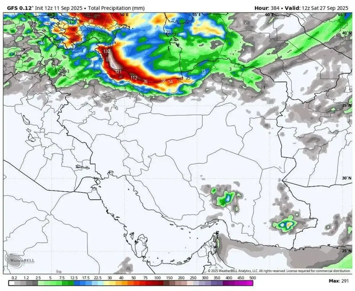 طبق مدل پیشبینی ۱۵ روزه هواشناسی آمریکا، بارندگی گسترده پیش از پایان تابستان مهربان ایران میشود.