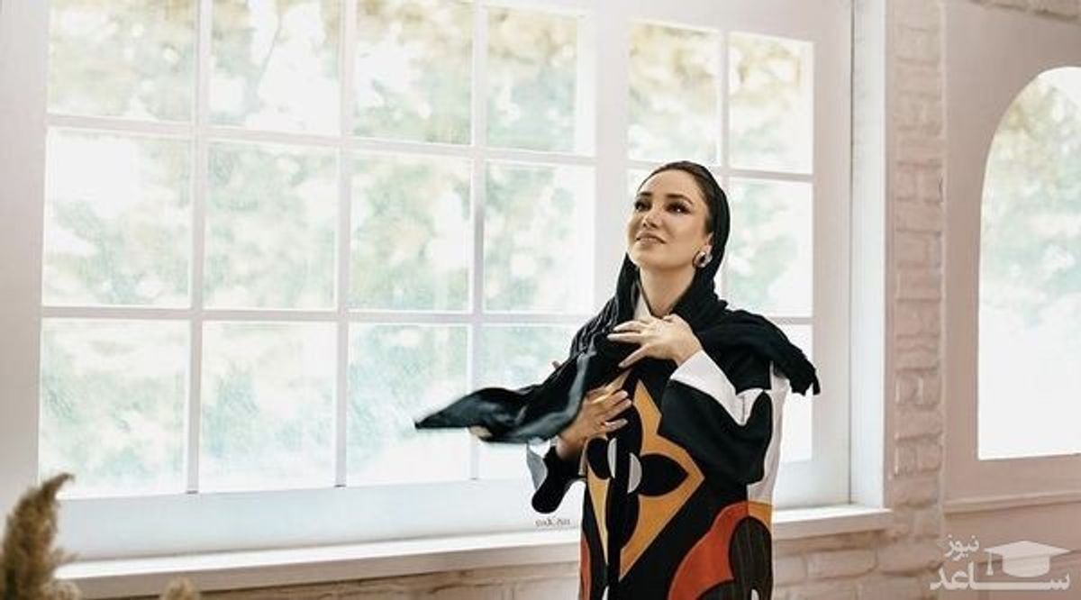 بهاره افشاری مدل مانتوی مزونی و گلدوزی خودش را طراحی کرد