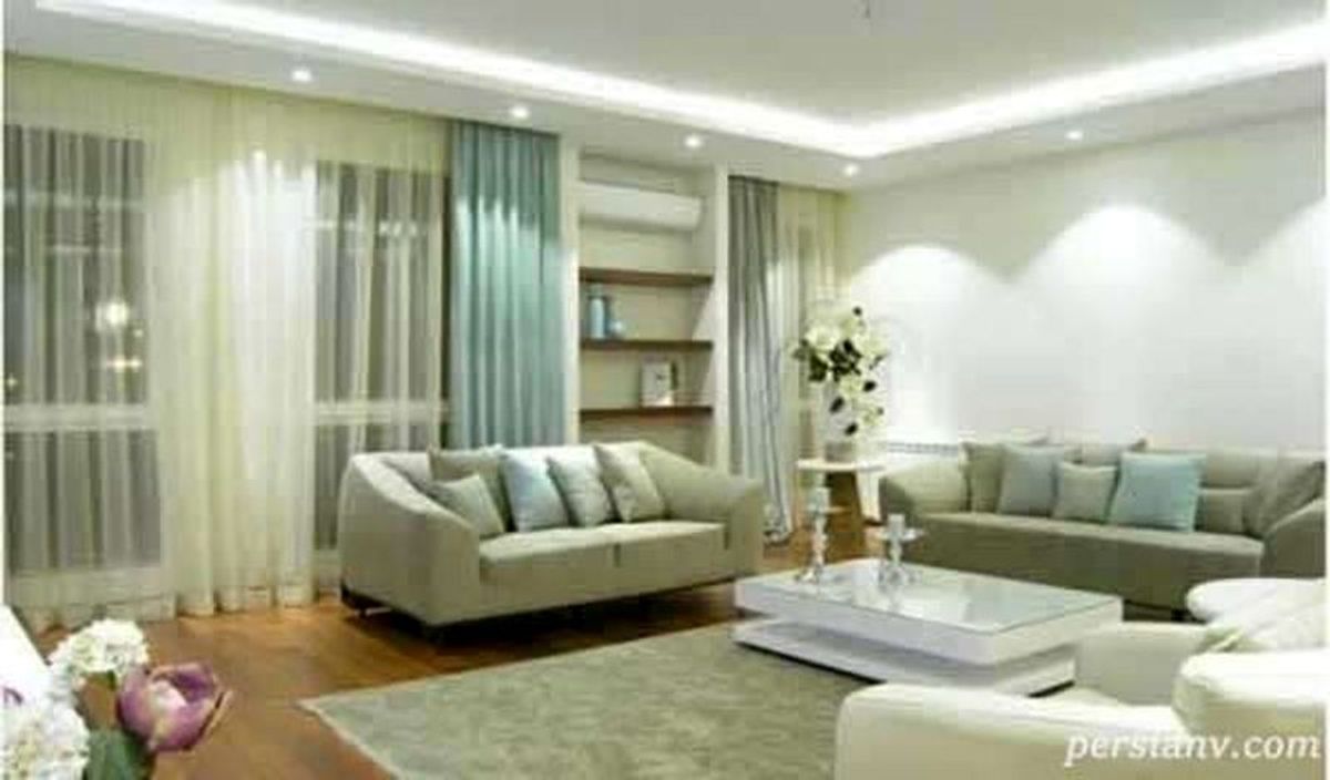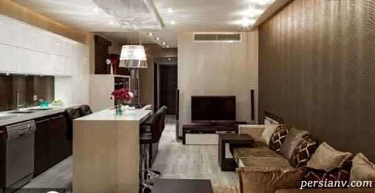 دکوراسیون خانه شیک و زیبای لیلا حاتمی با نورپردازی چشم نواز، پرده های حریر و آشپزخانه جزیره ای