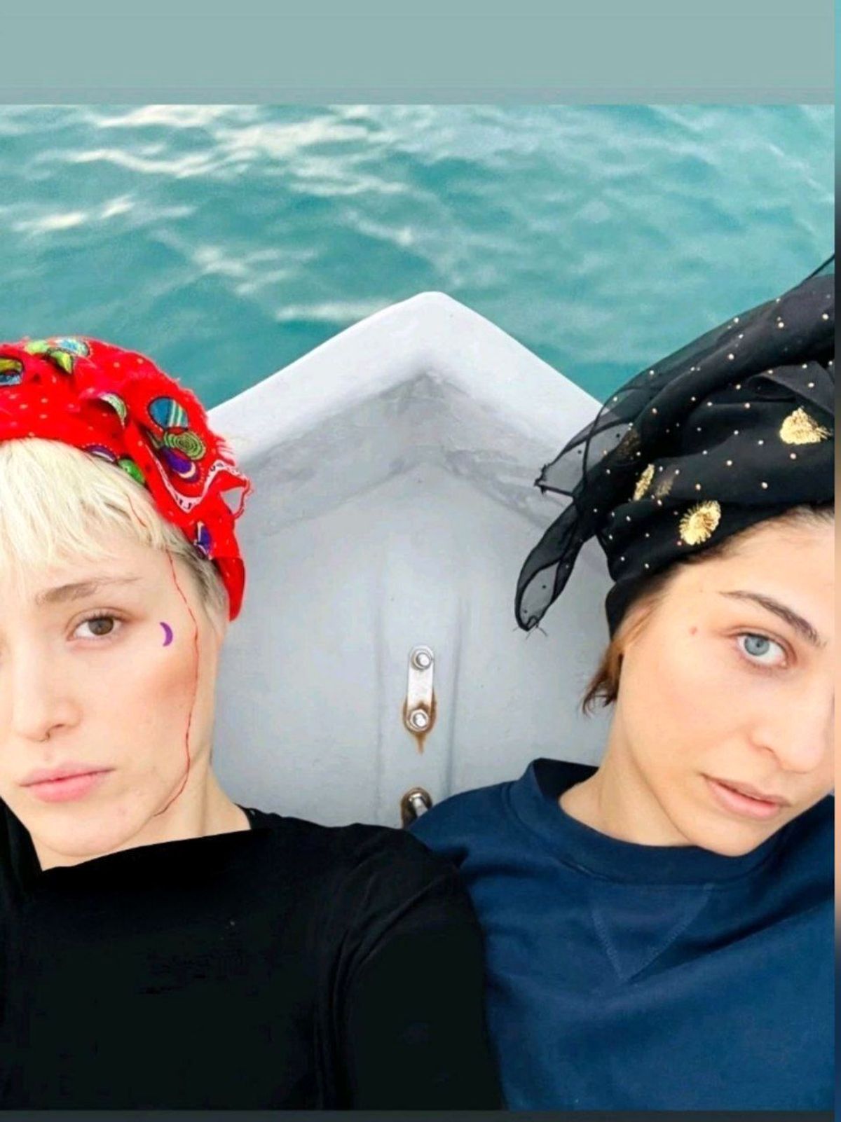 عکس خوابیدن فرشته حسینی روی قایق با تتوی ماه