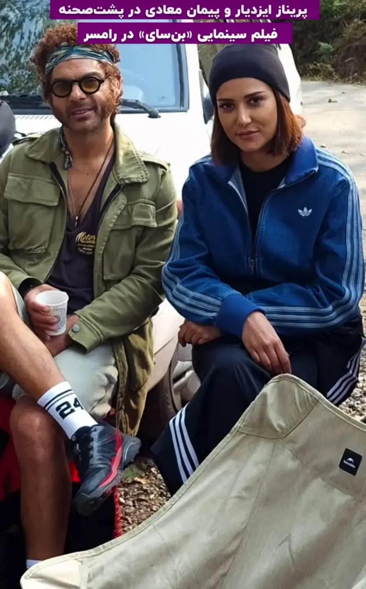 پریناز ایزدیار و پیمان معادی در پشت صحنه فیلم «بن سای»