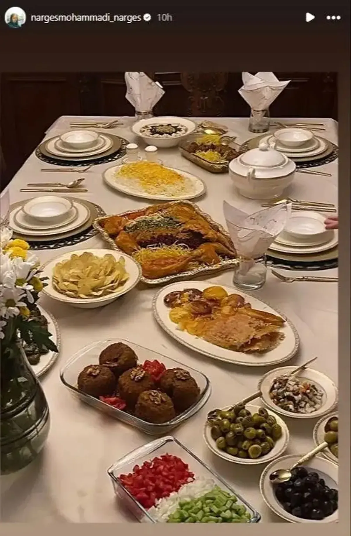 نرگس محمدی ، بازیگر معروف سینما و تلویزیون ایران، با اشتراک تصویر جذابی از میز غذایش، نشان داد که ذوق خاصی در چیدمان سفره ایرانی دارد. این میز با رنگها و ترکیبات خوشرنگ و خوشعطر، طنین دلپذیری از فرهنگ غذایی ایران را منعکس میکند.