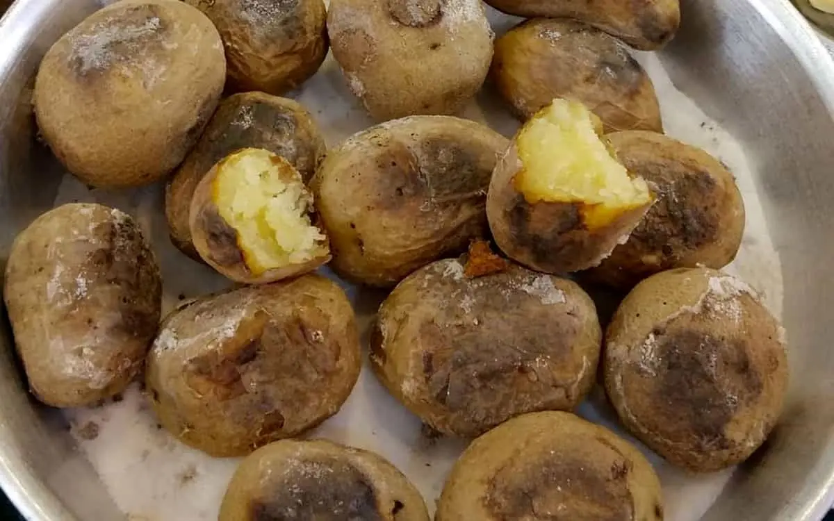 به سیب زمینی چسبیدند و شکل قالبی به خودشان گرفتند، از سیب زمینی جدا بشوند. حالا شما یک سیب زمینی خوشمزه دارید، حالا با همان پوست سیب زمینی، در درون ظرفی که دلخواه شما است قرار بدهید و با مقداری نمک در نمک پاش، آن را میل کنید.