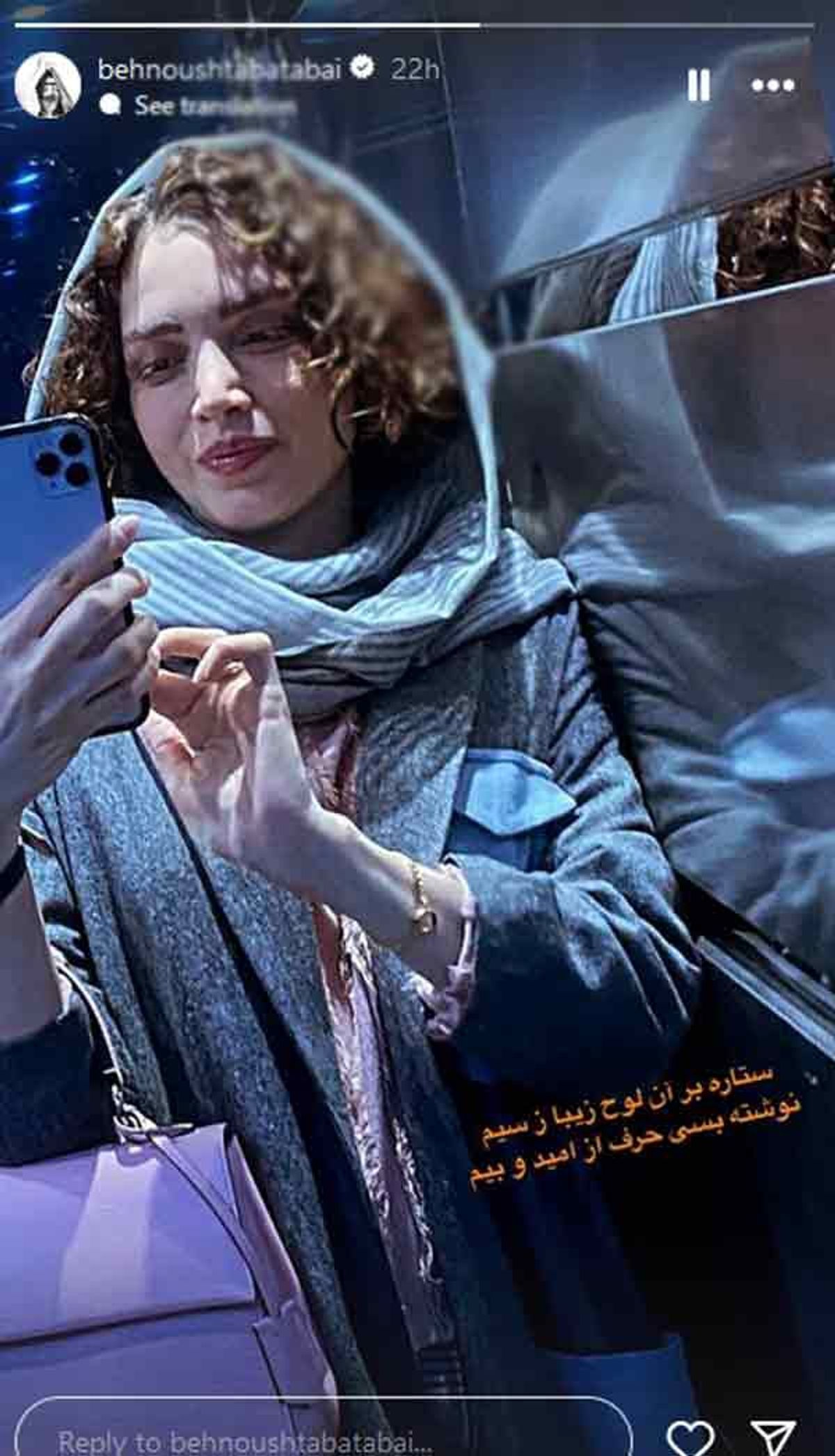 عکس آسانسوری بهنوش طباطبایی؛ تیپ ساده، زیبا و جذاب