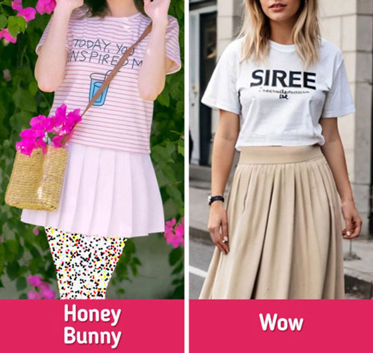 تیشرتهای رنگی یا با چاپ روشن، ممکن است کمی کودکانه به نظر برسند، اما وقتی با دامن میدی یا پلیسه ترکیب شوند، استایلی شیک و متعادل ایجاد میکنند. اضافه کردن یک کیف حصیری یا کراسبادی، ظاهر شما را برای هر فصلی مناسب میکند.