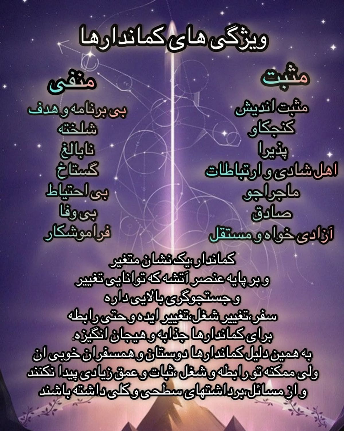 ۲۲ نوامبر تا ۲۱ دسامبر فصل کماندار است و این فصل فرصتهایی برای رشد، ماجراجویی و کشف دنیای درونی شما فراهم میکند.