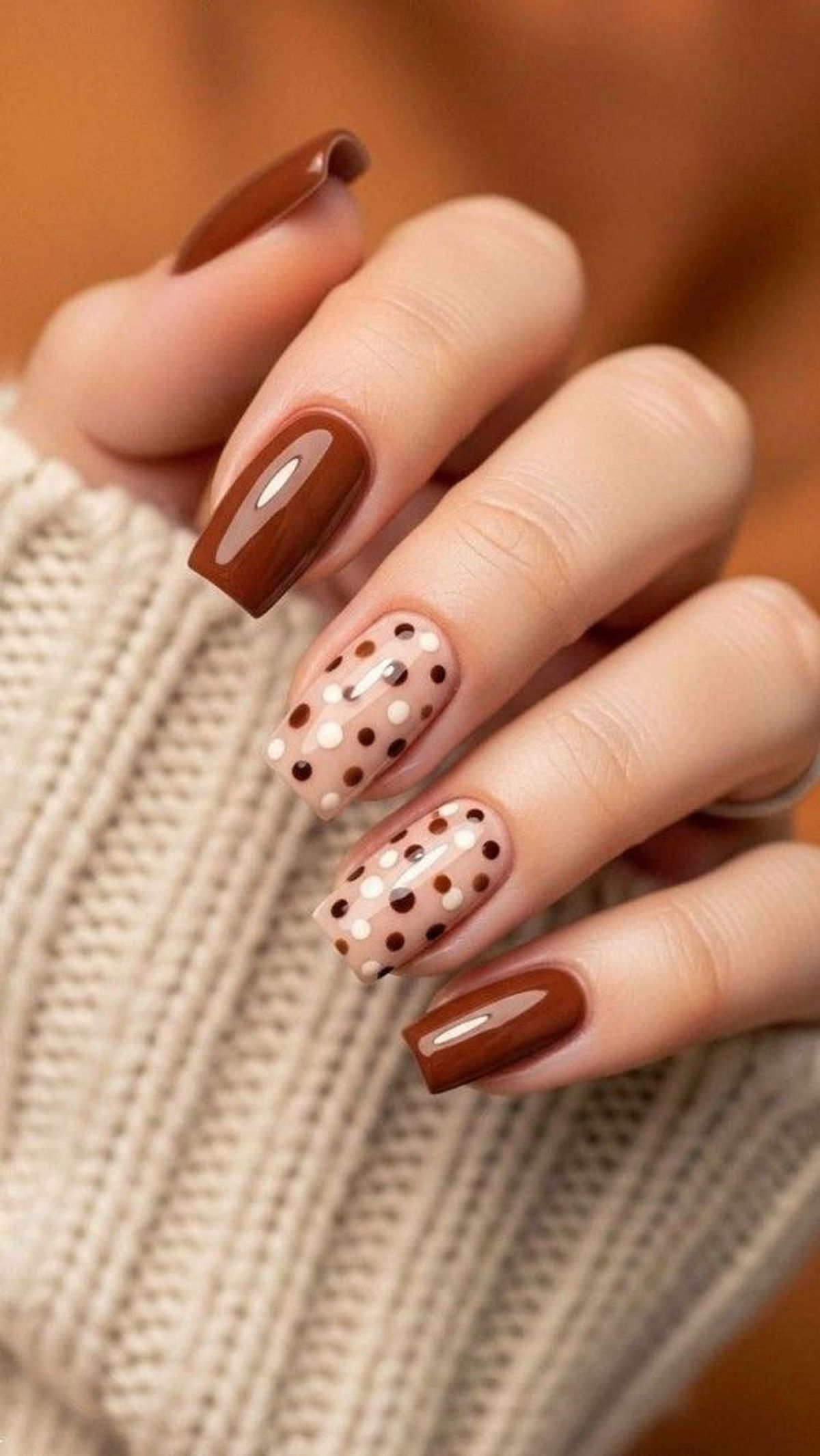 طراحی ناخن امروز | 30 ایده جذاب و ترند طراحی ناخن قهوهای پاییزی 1404 | طرح ناخن قهوه ای برای ست با لباس چرم