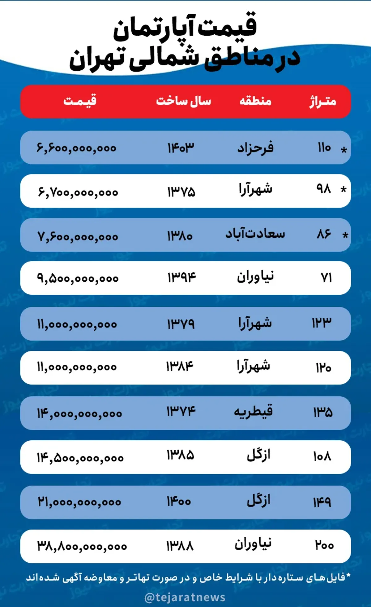 در روزهایی که بازار مسکن پایتخت تحت تاثیر عوامل مختلف دچار تحولات چشمگیری شده، مناطق شمالی تهران، بهویژه مناطقی که طی هفتههای اخیر هدف حملات رژیم صهیونیستی قرار گرفتند، با شوک قیمتی تازهای روبهرو شدهاند.