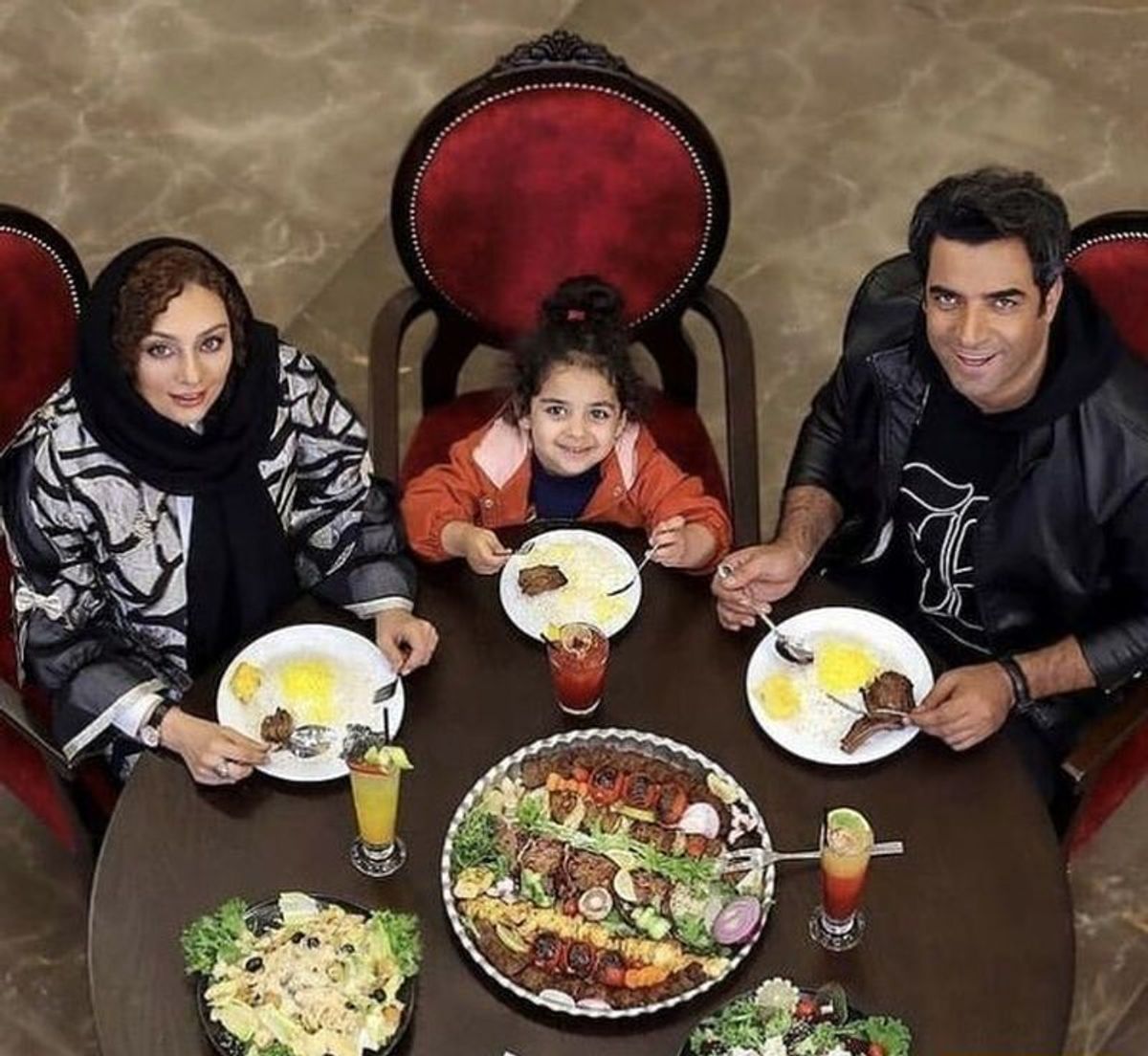 تصویری از شام خانوادگی یکتا ناصر و منوچهر هادی به همراه دخترشان در یک رستوران را مشاهده می کنید.