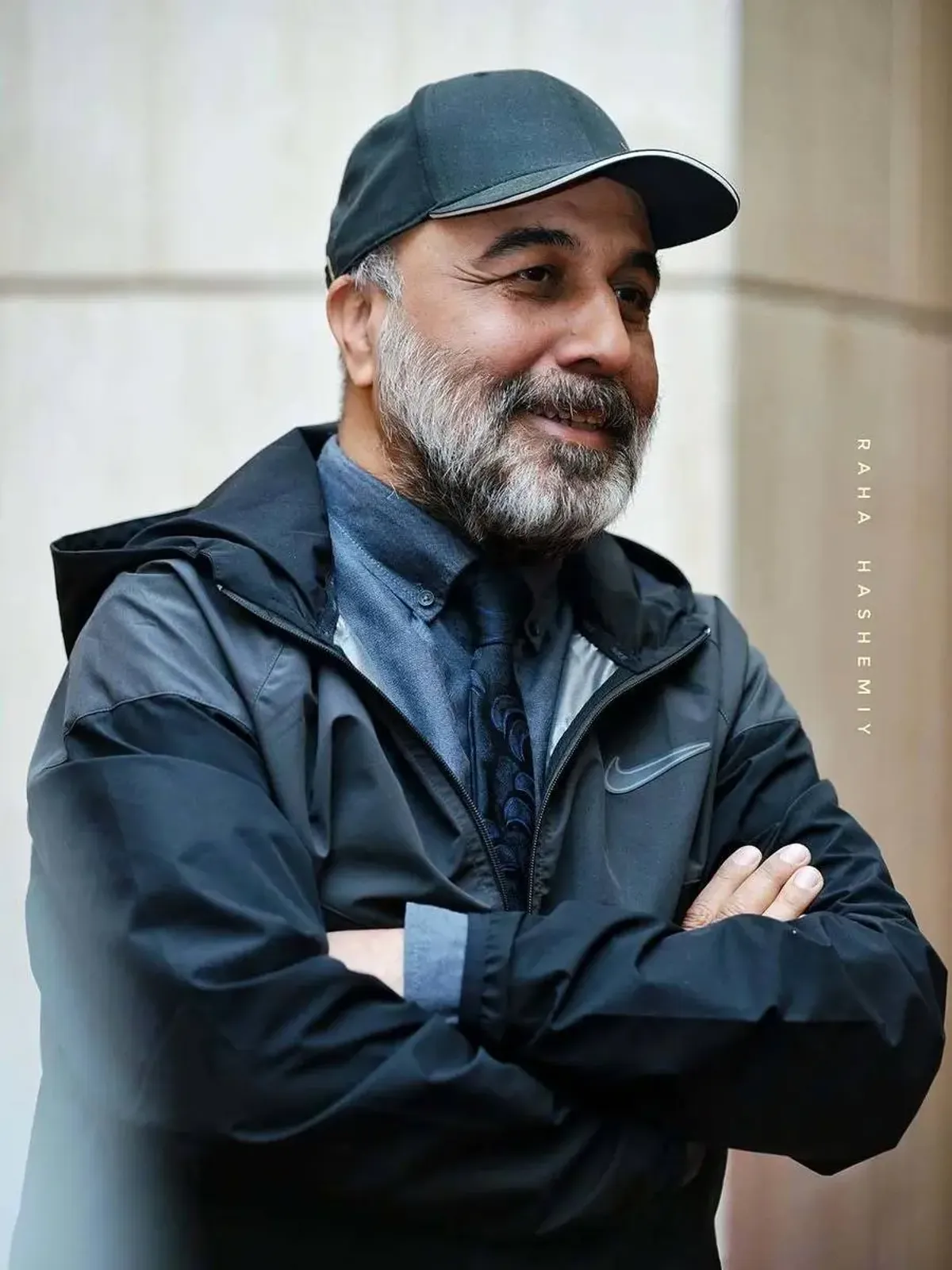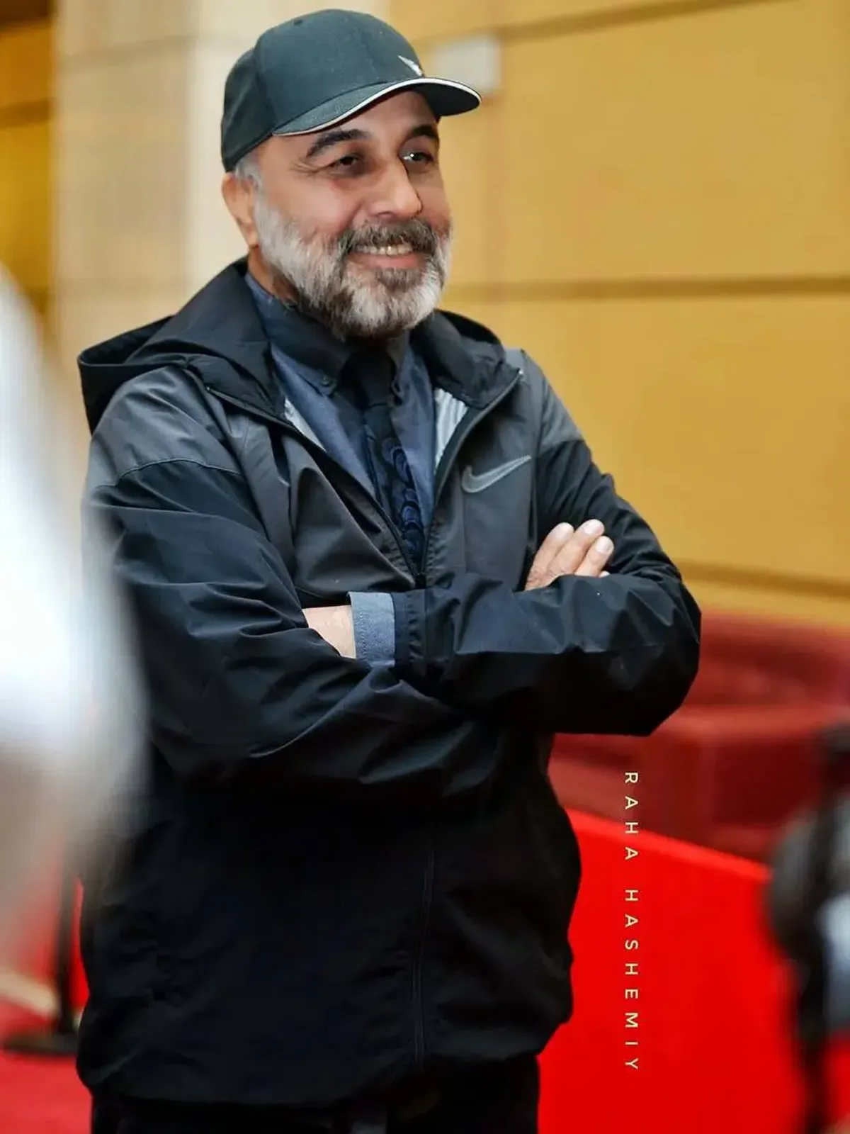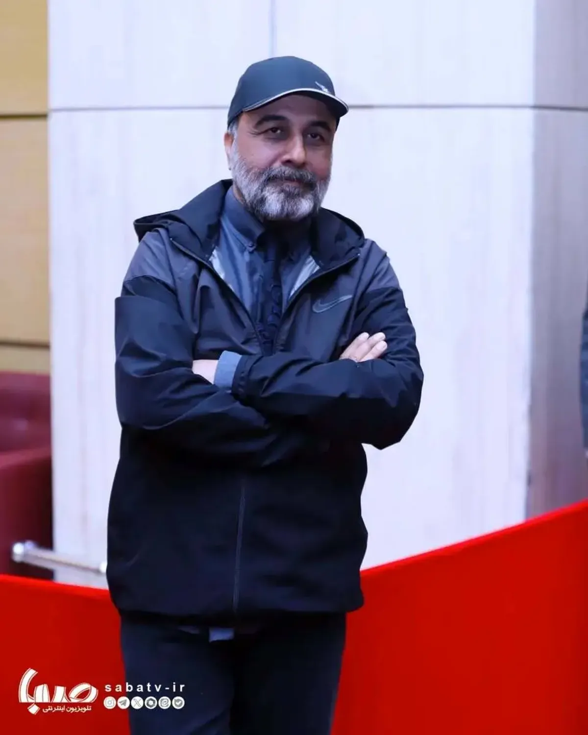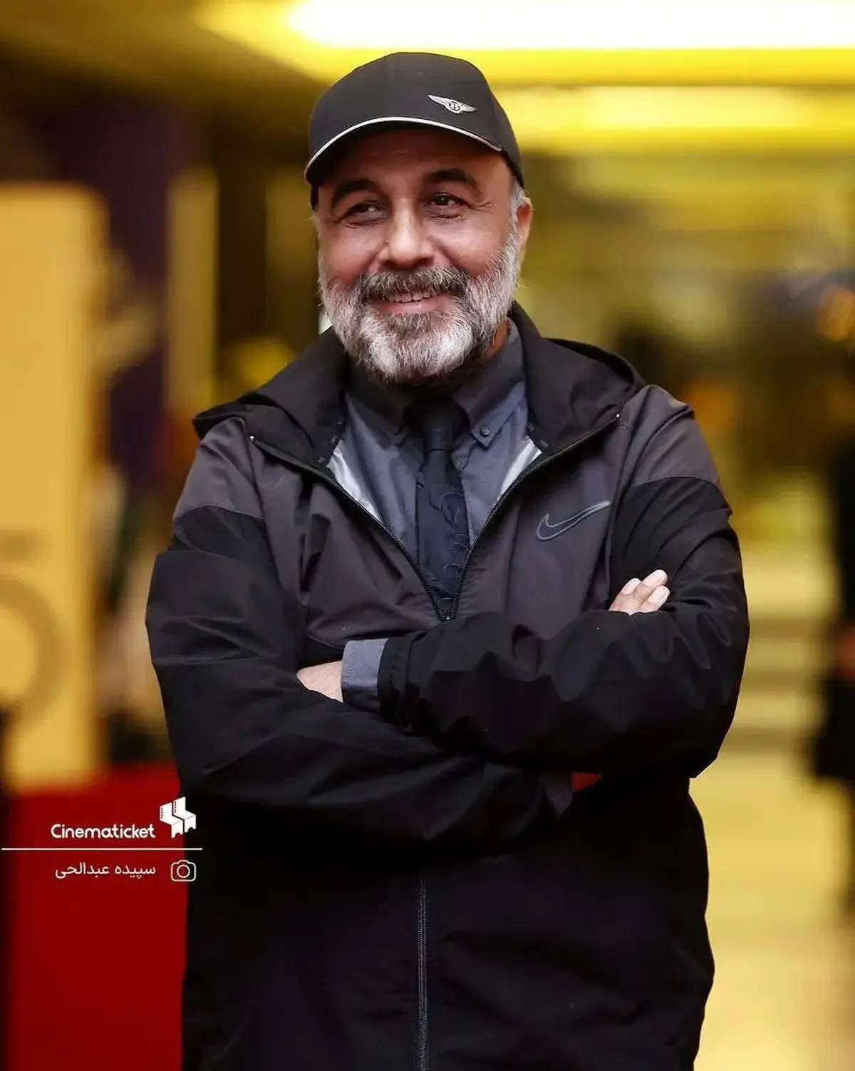 استایل ساده رضا عطاران با کلاه کَپ و تیپ کژوال در برج میلاد