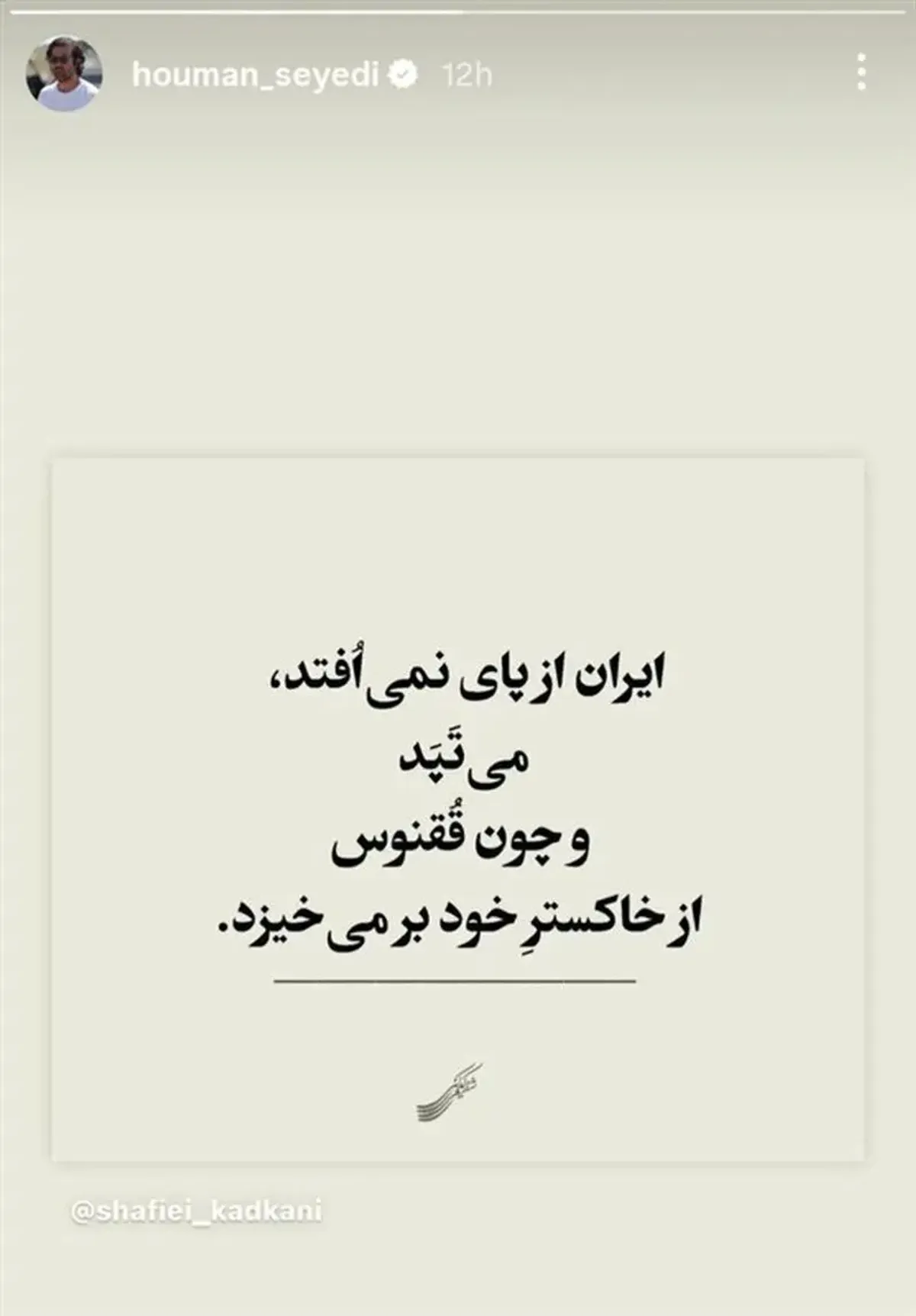 هومن سیدی بازیگر و کارگردان سینما در صفحه مجازیاش، به حمله تروریستی اسرائیل واکنش نشان داد.