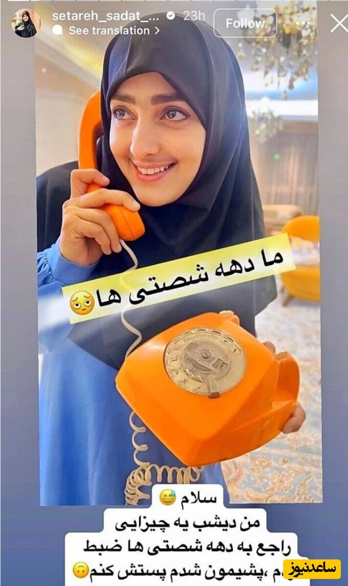 این استوری مربوط به عکس قدیمی ستاره قطبی نیست، بلکه او با گریم خود را شبیه دختران دهه شصتی کرده است. مجری محجبه تلویزیون در توضیح این عکس نوشت: