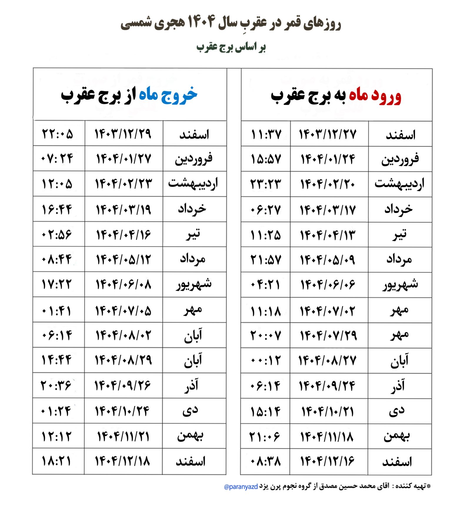 روزهای قمر در عقرب خرداد 1404 بر اساس برج عقرب