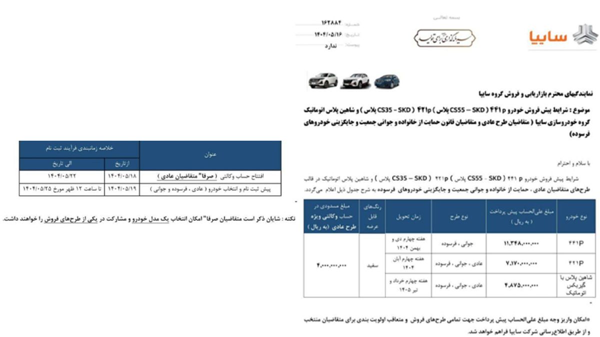 | مهلت پیش ثبت نام و انتخاب خودرو | ۱۹ مرداد تا ساعت ۱۲ ظهر ۲۵ مرداد ۱۴۰۴ |