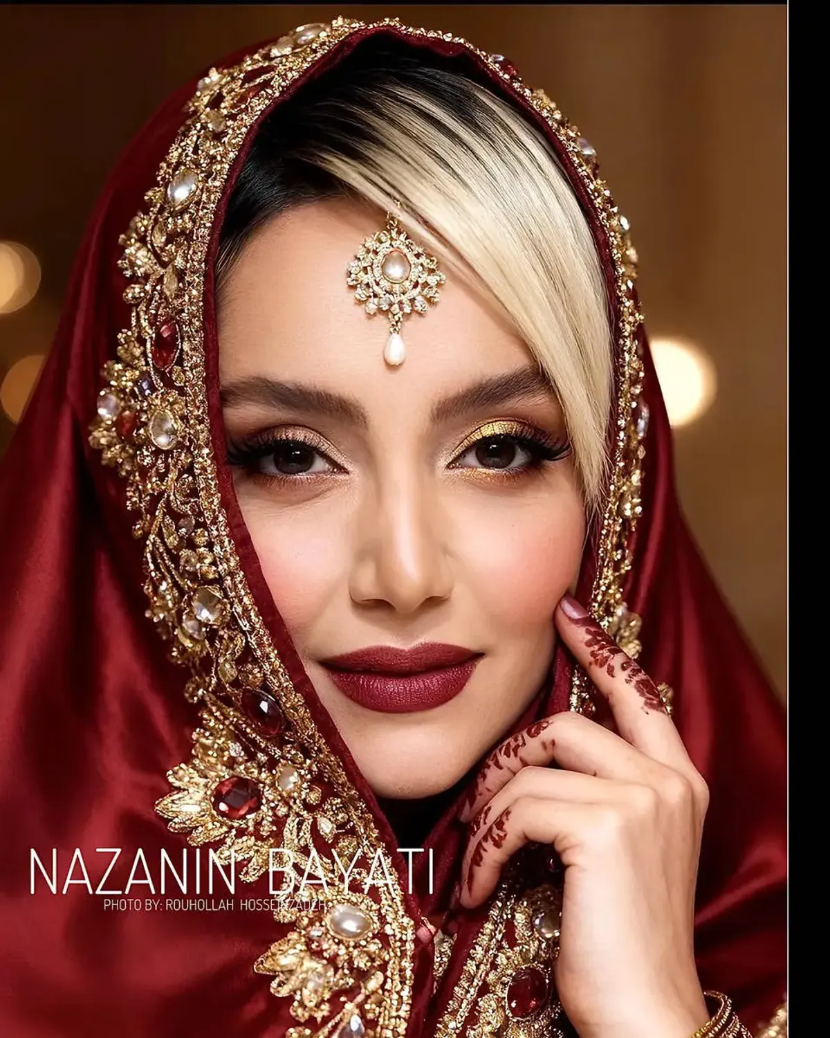 استایل هندی نازنین بیاتی با مدل حنای شیک روی دست