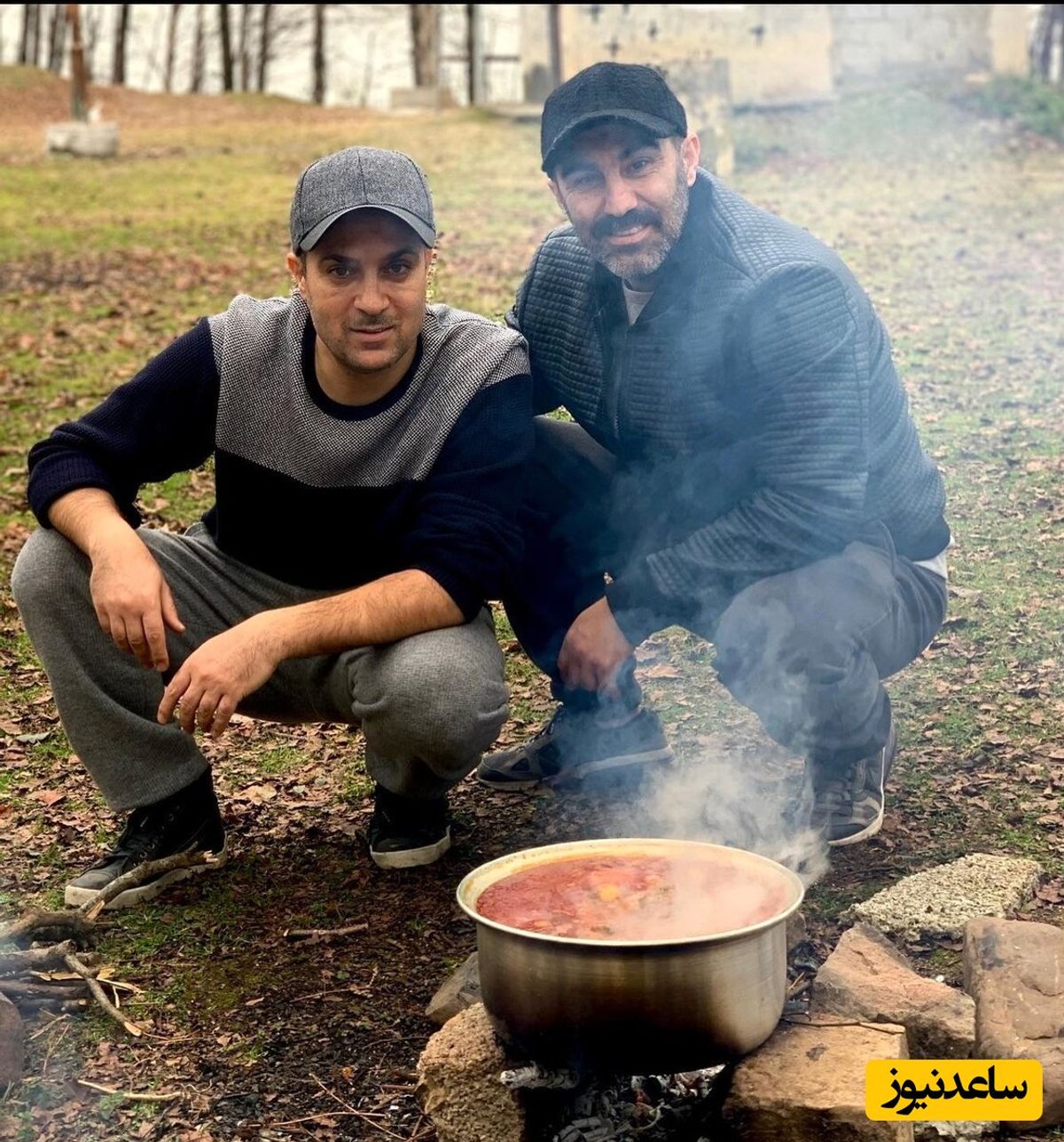 محسن تنابنده و احمد مهرانفر، نقی و ارسطو در ژست خاص کنار دیگ آبگوشت!