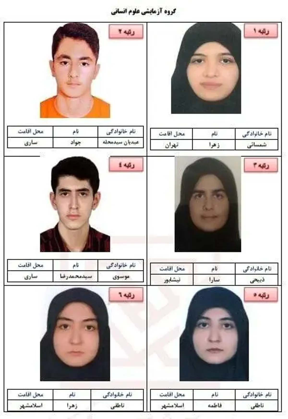 رضا محمدی، رئیس سازمان سنجش آموزش کشور امروز شنبه ۸ شهریور ماه در نشست خبری با خبرنگاران اسامی نفرات برتر آزمون سراسری سال ۱۴۰۴ در ۵ گروه آزمایشی را اعلام کرد.