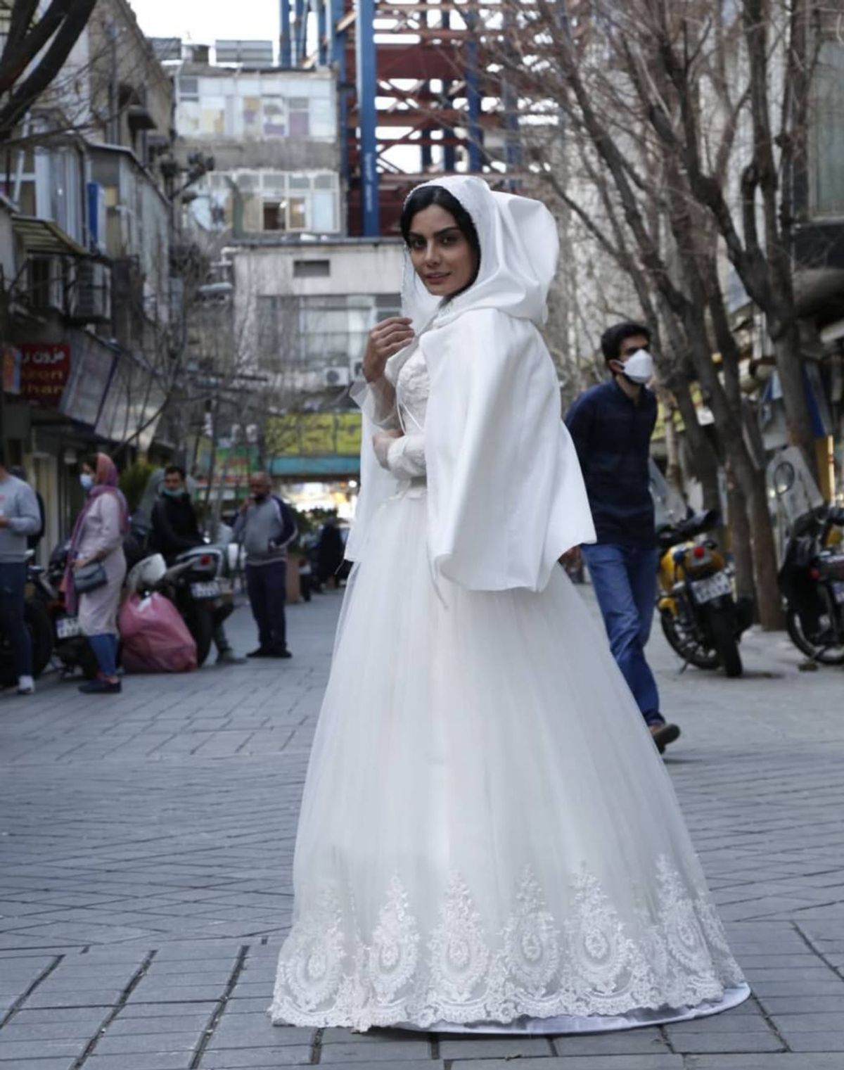 عکس صحرا اسداللهی با لباس عروس در خیابانهای تهران مورد توجه قرار گرفت.