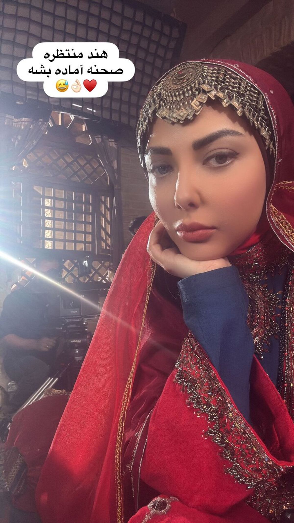 لیلا اوتادی با پوشش زنان عرب در پشت صحنه سریال جدیدش