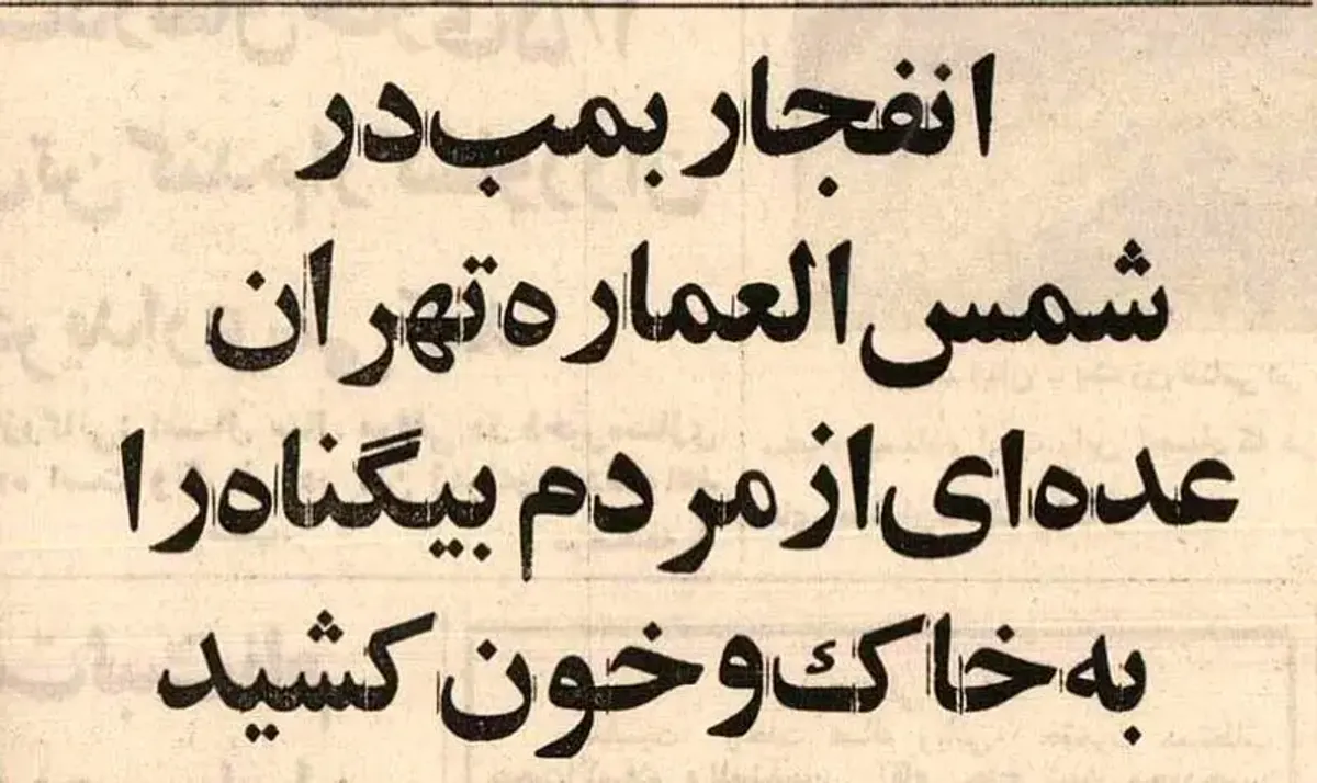 ساعت ۸ و ۱۵ دقیقه صبح روز ۲۲ اردیبهشت ۱۳۶۴ انفجار یک بمب کار گذاشته شده در یک خودرو پارک شده در ابتدای کوچه مروی حوالی شمسالعماره باعث خسارات مالی و جانی در این منطقه از شهر تهران شد. روزنامه اطلاعات عصر همان روز گزارش مصوری از این رویداد منتشر کرد. گزارش را بخوانید و عکسها را تماشا کنید.