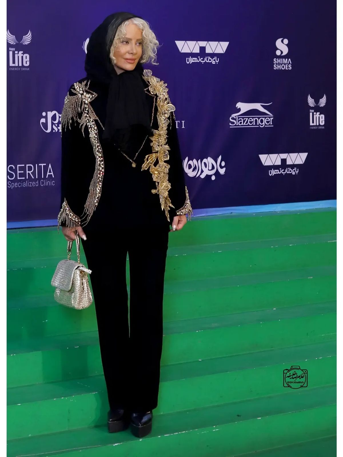 نقطه عطف استایل شراره رخام، کت پرکار و ماکسیمالی بود که با گلهای برجسته طلایی تزئین شده بود. این کت، انتخابی جسورانه و متفاوت بود و به دلیل طرح شلوغش، تمام توجه را به خود جلب میکرد. طراحان لباس، اغلب توصیه میکنند که آیتمهای پرکار را با لباسهای ساده ست کنید تا استایل نهایی متعادل به نظر برسد. شراره رخام با هوشمندی همین قاعده را رعایت کرد و با ست کردن این کت با شلوار و شال مشکی ساده، تمرکز را کاملاً روی کت قرار داد.