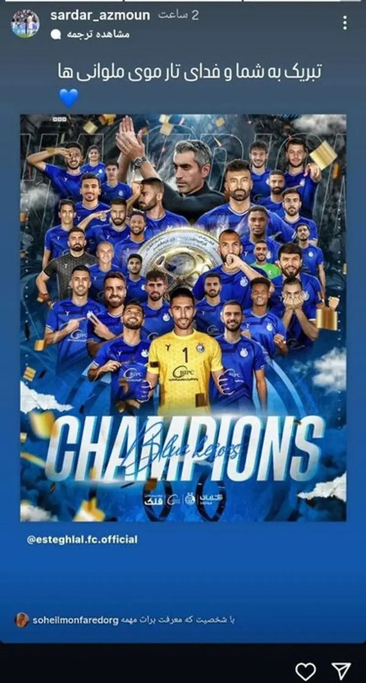 استوری خاص سردار آزمون برای قهرمانی استقلال در جام حذفی+عکس